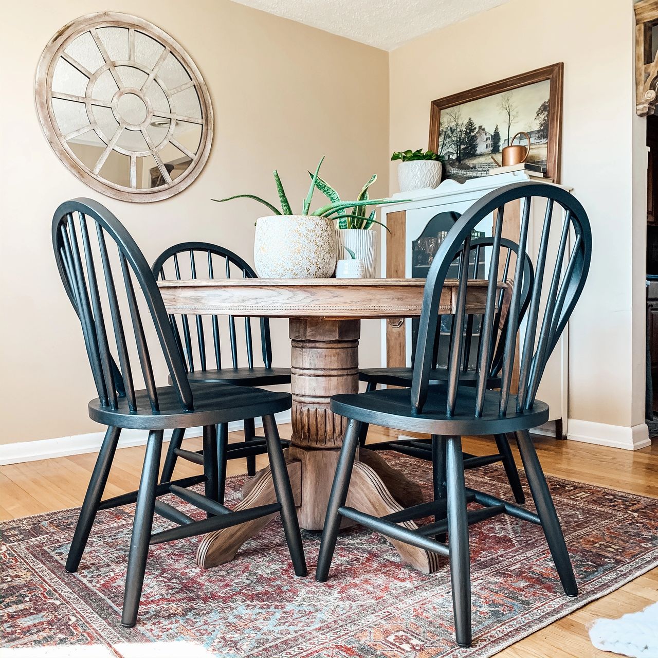For another refinishing tutorial, check out my old desk that got a new life! The edges were beyond worn, the wax finish was splotchy and the surfaces. I did not use paint because my kitchen table has a painted base with a stained top, my dining room chairs will be painted and my. The set was allowed to cure for a week before using it. Do you have oak dining room table and chairs at your home?.